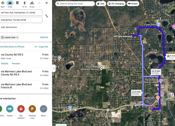 Dining and major shopping are sparse within the town, typically requiring a 20-minute drive to Palatka for major groceries, healthcare, and services.