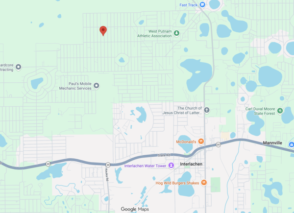 Enjoy peaceful small-town living surrounded by nature, with elevations around 188–189 ft and easy access to nearby lakes for fishing, kayaking, and weekend relaxation. You’re also conveniently located within driving distance to Palatka, Gainesville, and Ocala via SR-20, making it easy to stay connected while enjoying privacy.